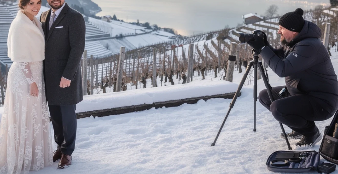 Équipement photographique spécialisé pour mariages d’hiver vaudois