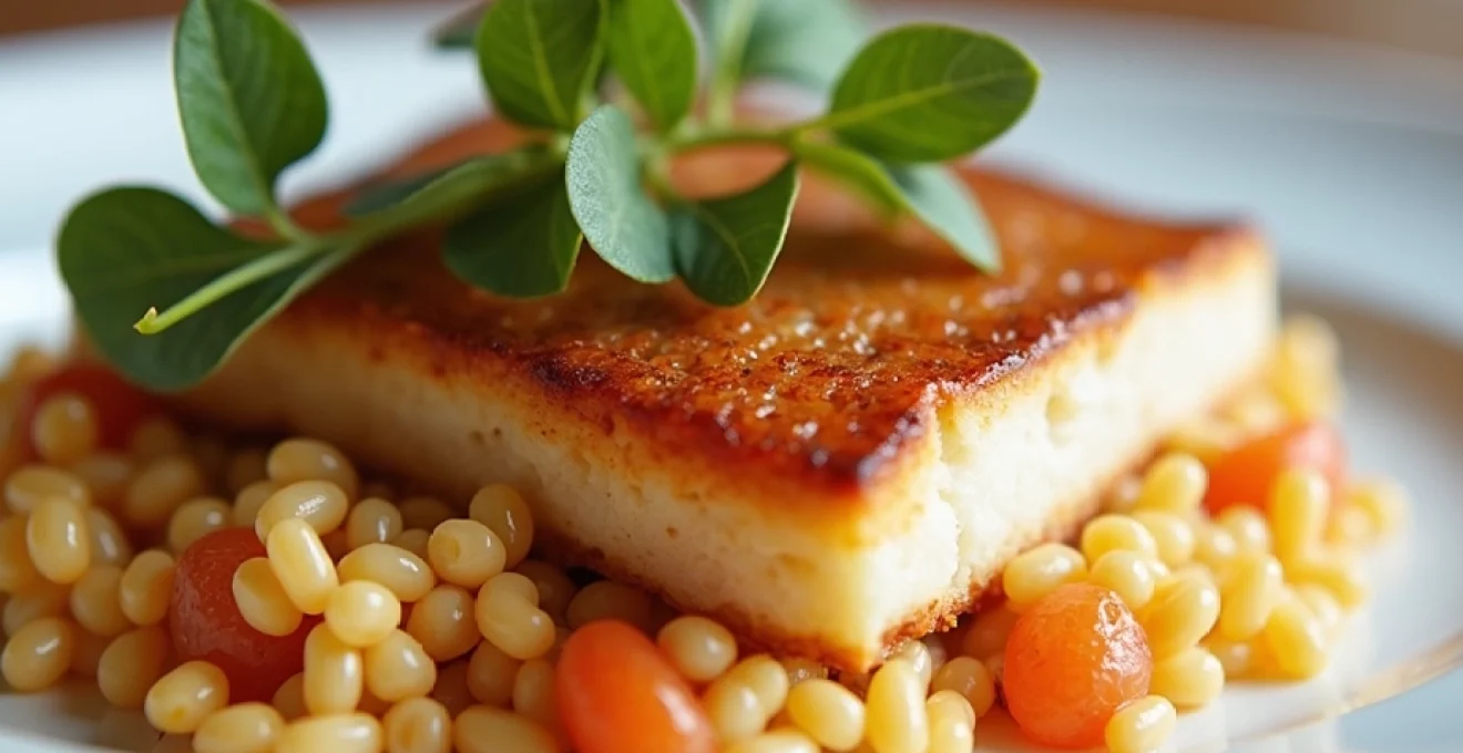 Le turbot, considéré comme le roi des poissons plats, est ici sublimé par une cuisson au beurre de baratte qui lui confère une saveur riche et une texture fondante. Il est accompagné d’un risotto crémeux aux morilles, champignons nobles qui apportent une note terreuse et boisée. Le jus de veau, réduit et concentré, vient lier l’ensemble, créant un pont gustatif entre la mer et la terre. Ce plat démontre que les mariages de saveurs audacieux peuvent donner naissance à des créations culinaires exceptionnelles.